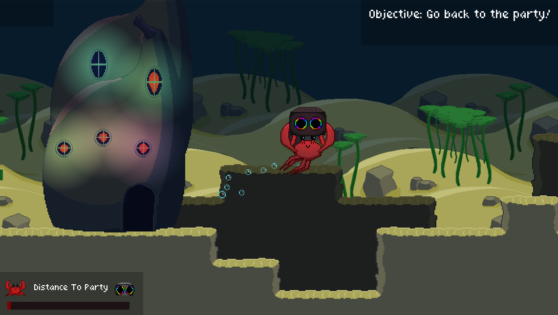 While you were throwing the BEST crab party in the ocean, your favorite speaker breaks! You need to bring another speaker as fast as possible or else the party will be ruined! Oh also, the local wildlife does not like your music.